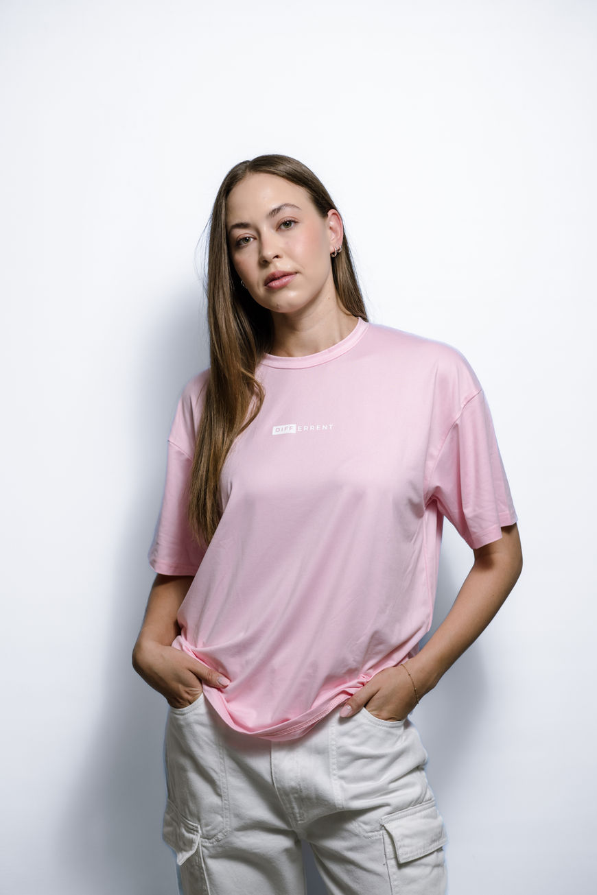 Designed for the girls who move with purpose - this pastel pink oversized tee combines comfort and minimal style for an everyday active look. Crafted from a lightweight, ultra-flex fabric that moves with you, it’s perfect for workouts, coffee runs, or just living in your lane.
