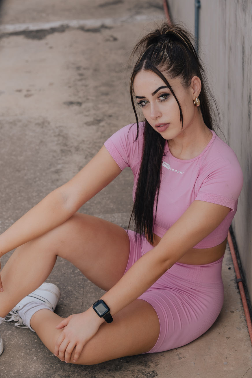 This ribbed-pink cropped top delivers smooth, body-hugging performance with zero distractions. High-stretch fabric moves with you — from squat to street — while its clean silhouette keeps your look bold and effortless.